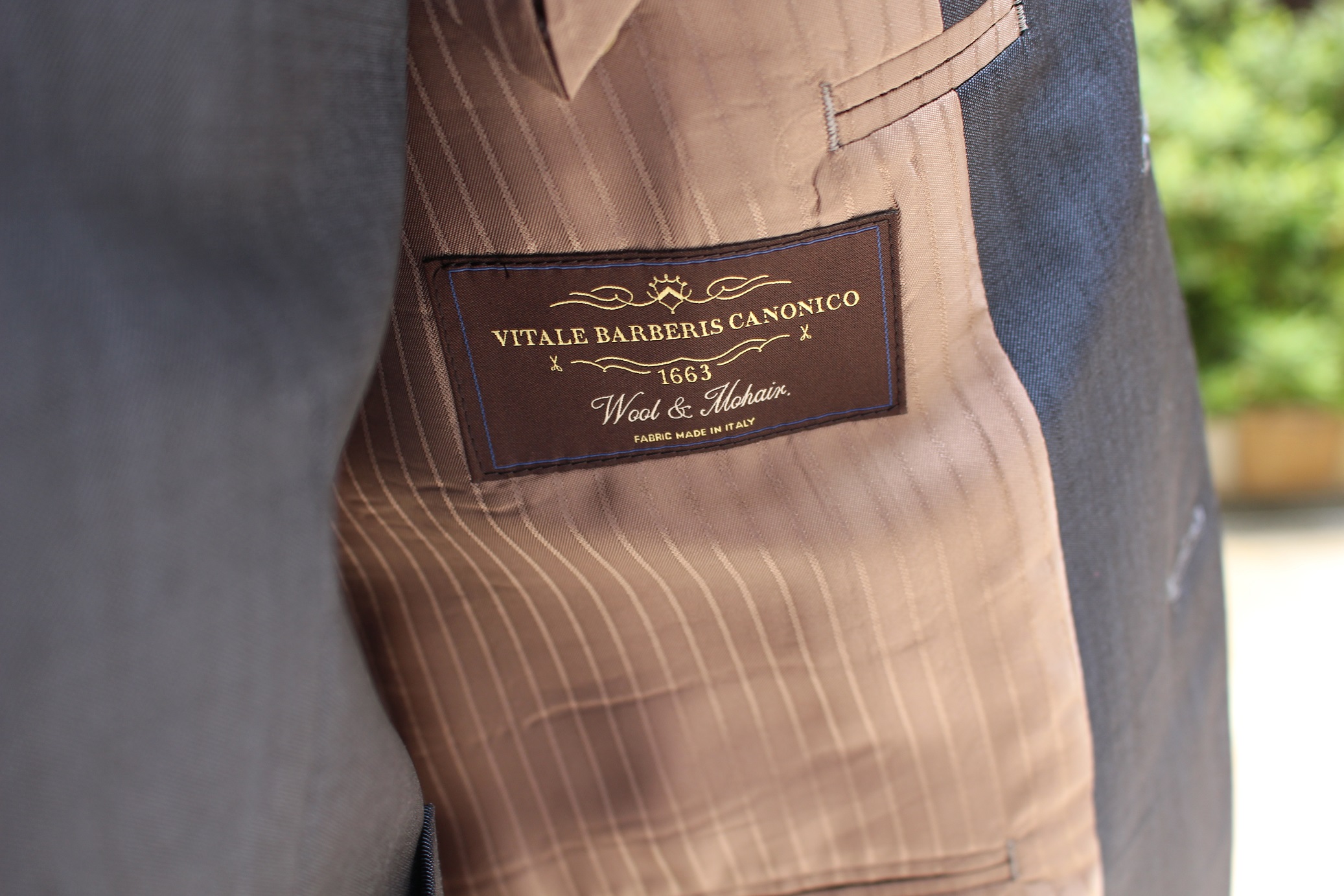 今季、大変な人気を誇っております、カノニコのモヘヤツイル。ブルーグレーのカラーが一番の人気。美しい光沢が何よりの魅力。お洒落度が高く上品です。今回の裏地は、シルバーやネイビーではなく、ベージュのストライプ柄をセレクトいただきました。