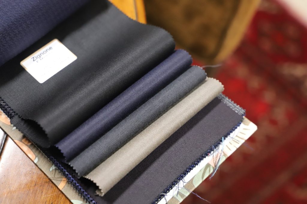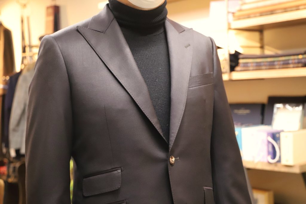 今シーズン、最も美しいダークブラウンの一つと言っても過言ではない。ジニョーネ社の展開するE-MOTIONコレクションの服地。今回はお子様の卒園式用にてオーダーいただきました。A様、この度は誠にありがとうございました。