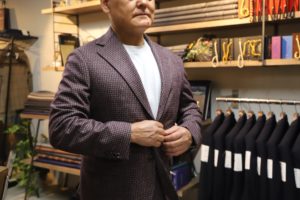 また、今回は単品でのベストを追加オーダー。バンブーの美しい光沢のある服地をチョイス。色合いがバッチリで、ジャケットを合わせても、まとまりがございます。