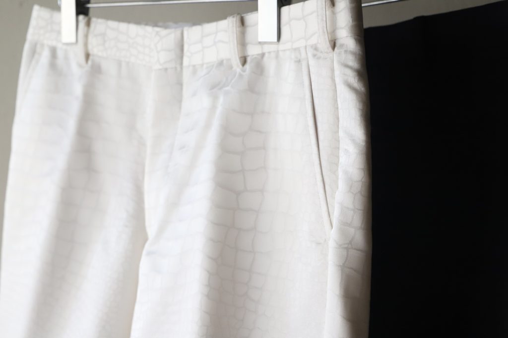 本日のご紹介はウール&シルクのクロコ柄パンツと、ブラックのコットンパンツ。